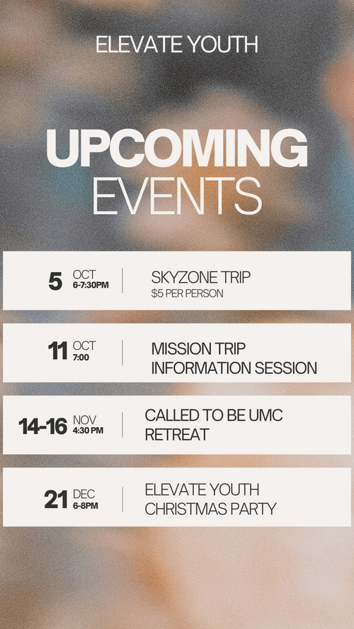 Here you will a list of events that the youth are planning to be apart of in the upcoming months--not including our regular weekly meetings. If you would like more information, you can contact our Youth Director through the prompt below. We also post regularly our GroupMe where you will find announcements regularly.