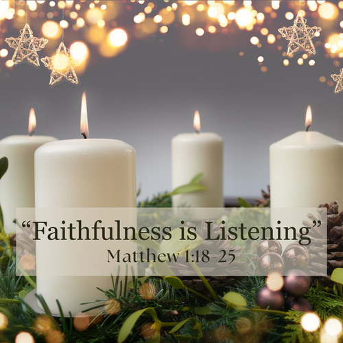 Please join us Sunday, December 21, 2025, in person or livestream. Rev. Dr. Brian Sixbey will bring us the sermon, “Faithfulness is Listening” with Matthew 1:18-25 as the scripture reference